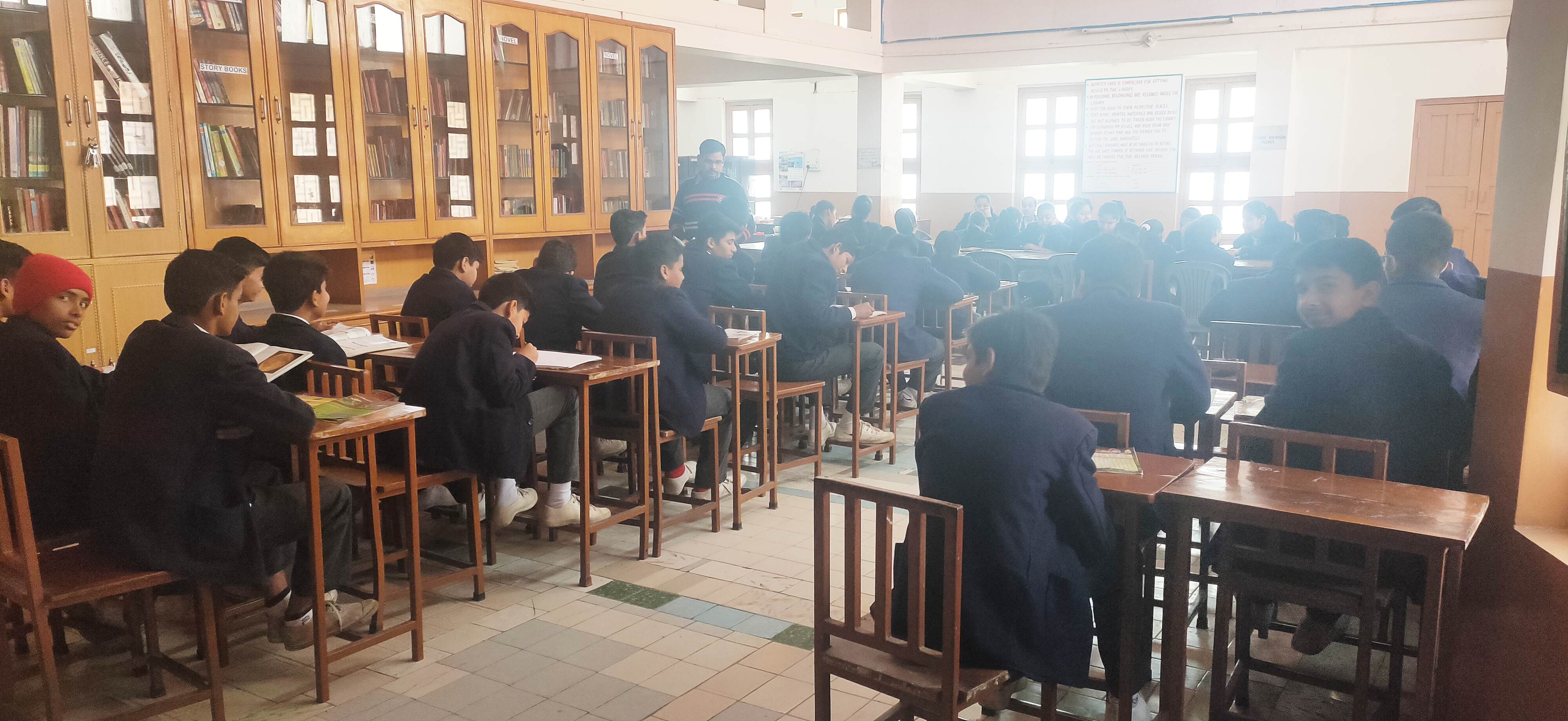In order to keep pace with the ever growing need of knowledge, one big library is in the school where students feel perfectly at ease as they browse through volumes on varied subjects. Apart from the reference work that the students often indulge in, they gladly await the days on which they visit this temple of knowledge just to ease themselves by reading the wonderful collections laid open before them.